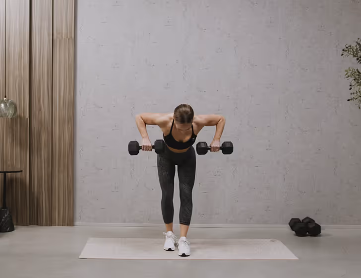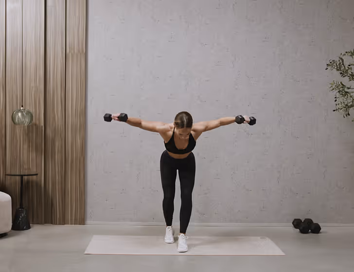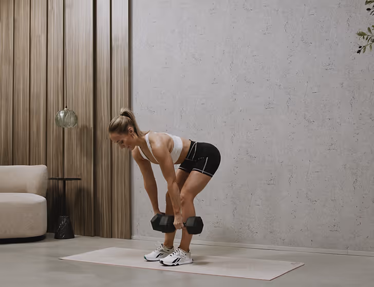 Kickstart requires dumbbells, a resistance band, and an exercise mat.